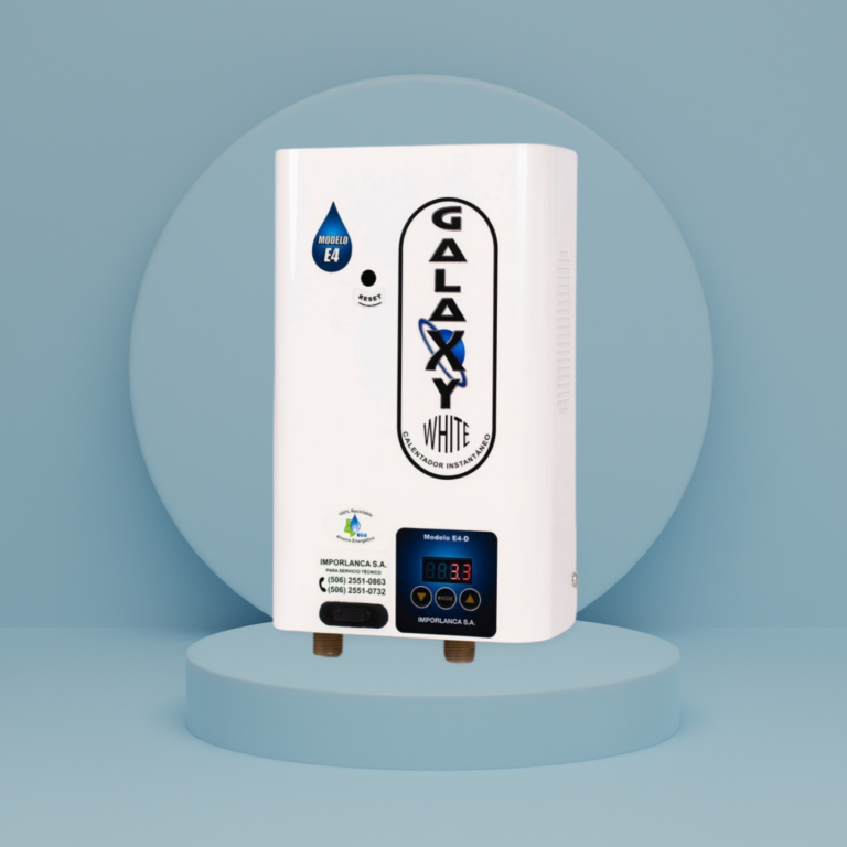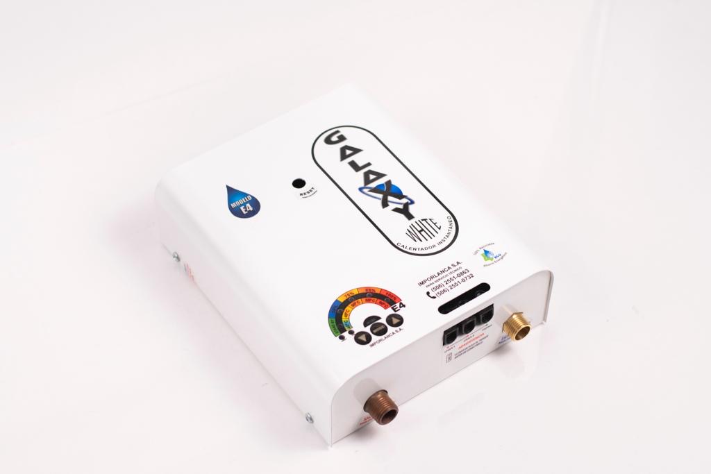 Galaxy E4-D: Novedoso Calentador instantáneo, que permite bajar y subir su potencia, le dice los litros gastados por evento, es grado alimenticio, puede variar la temperatura y además posee un timer su principal arma de llamado a la conciencia.