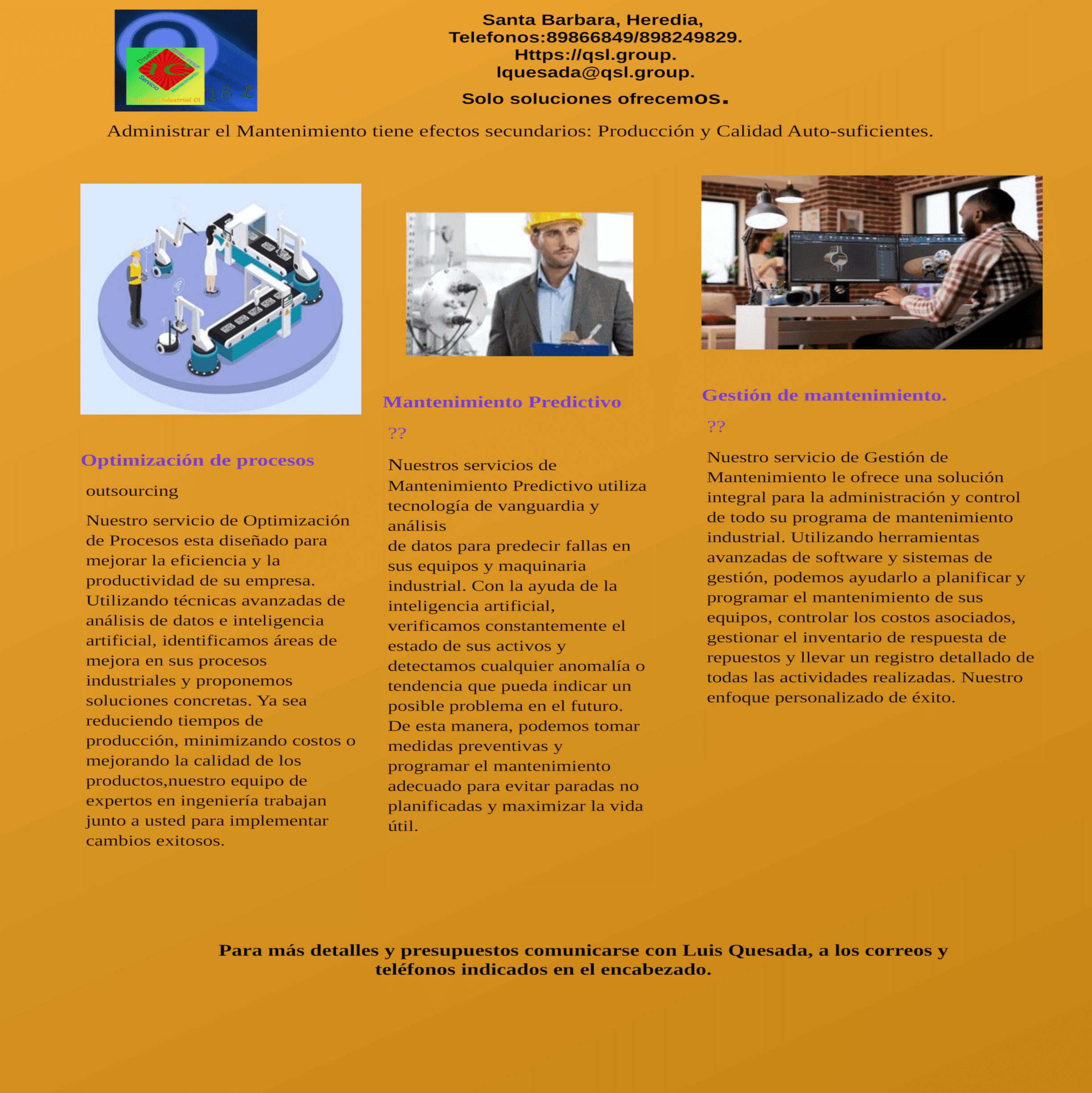 ayudarlo a planificar y programar el mantenimiento de sus equipos, controlar los costos